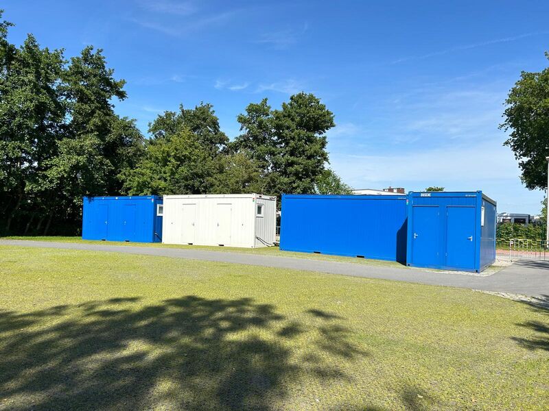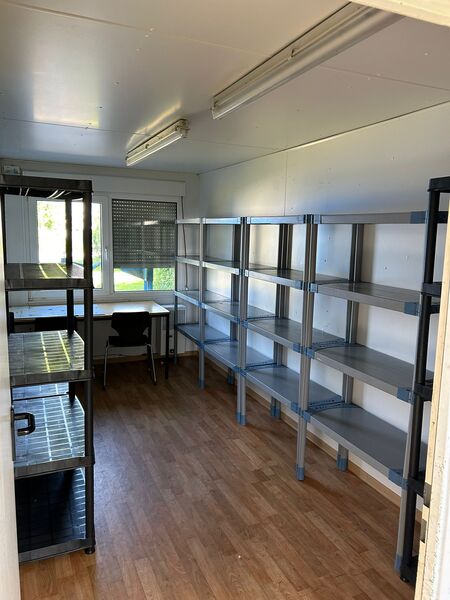 Zum Glück gab es im Studium hochprofessionelle Regalaufbaukurse. So, dass auch unser Büro- und Materialcontainer den letzten Schliff bekommen hat, bevor morgen die große Materialflut kommt.