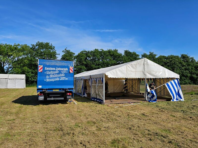Währenddessen haben die wirklichen Profis die Zelte auf dem Gelände aufgebaut. Jetzt stehen also auch schon das Küchenzelt, das Essenszelt und natürlich ganz wichtig: unser Veranstaltungszelt!