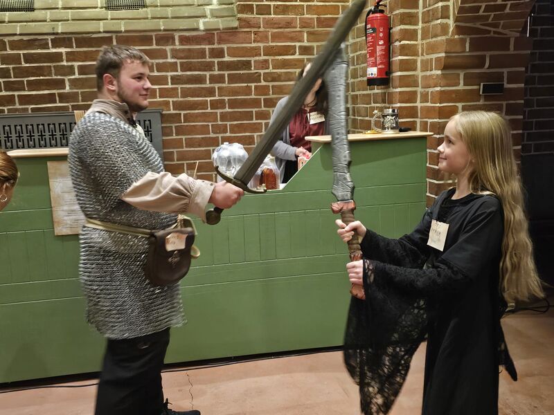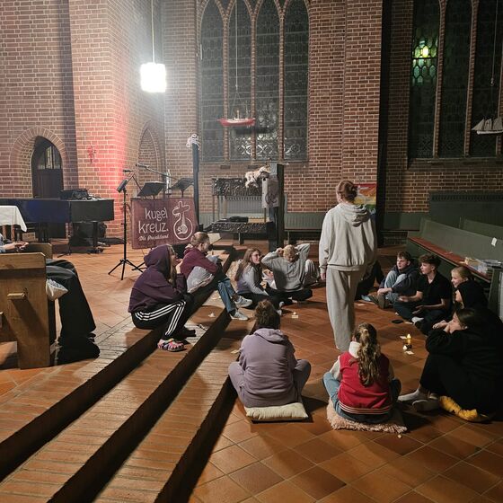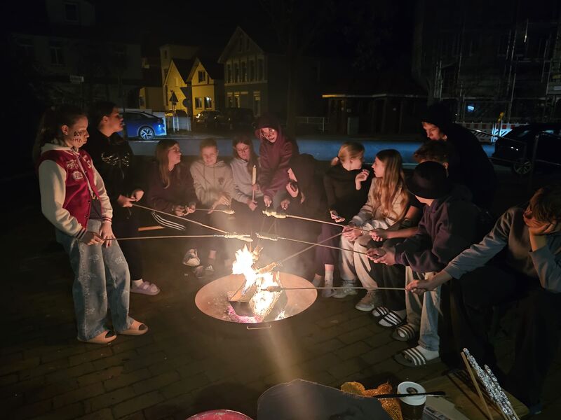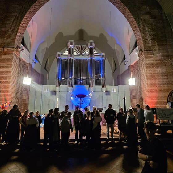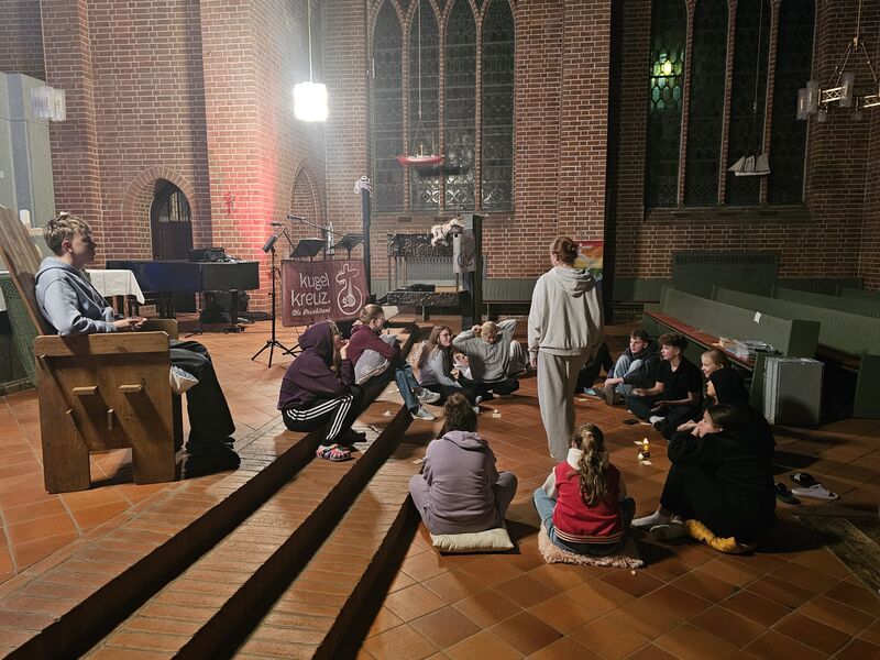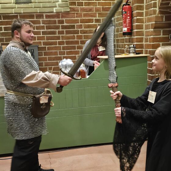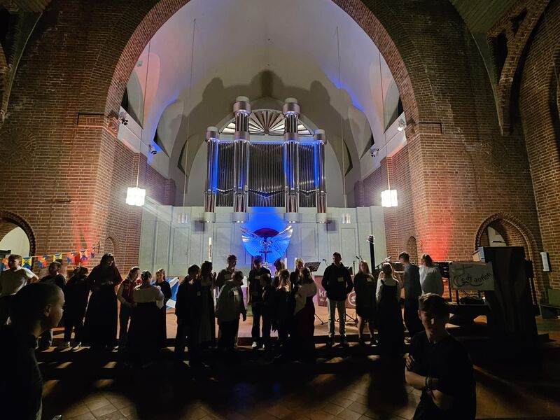 Wenn Ritter durch das alte Kirchenschiff schreiten und Feen mit funkelnden Flügeln wirbeln, verwandelt sich St. Petri in einen Ort wie aus dem Märchen – genauso war’s in der Nacht vom 30. auf den 31. Oktober 2025, als etwa 30 Konfirmanden und Jugendliche dort die Church Night der Evangelischen Jugend erlebten. Für die KiA-Veranstaltung hieß es „Märchenhafte Mittelalternacht“ – organisiert vom Vorstand des Kirchenkreisjugendkonvents sowie einem motivierten KiA-Team im Hintergrund. Gelkerzen, Poolnudelkampf und Drachenjagd Kirchenkids in Gestalt von Feen, Burgherrinnen, Rittern und Lehrlingen erlebten bunte Angebote: Kerzen selbst giessen, Kreuze aus Holz aussägen und bemalen, mit dem Brennstift Muster zeichnen, sich schminken lassen, Dosen umwerfen, Spiele mit Geschick testen, mit Poolnudeln raufen, Drachen jagen oder Werwolf spielen – dazu drei frische Gottesdienste, die der Nacht in Cuxhavens Kirche ihren Stempel aufdrückten. Ein Schwertkampf für die Galerie: Philip aus Basbeck und Femke aus dem ostfriesischen Weener. Die Elfjährige ist Tochter der Sängerin der angereisten Band "Kugelkreuz". Die Teamenden gestalteten die Gottesdienste mit viel Spielwitz und Schalk im Nacken. Unterstützt wurden sie von Kirchenkreisjugenddiakon Matthias Schiefer – als keltischer Adliger verkleidet – wobei Pastorin Meike Müller-Bilgenroth als Luther-Gattin Katharina von Bora mit von der Partie war. Musikalische Verstärkung kam diesmal eigens aus Ostfriesland Die Band „Kugelkreuz“ sorgte musikalisch für Stimmung beim bunten Treiben – dieses Jahr mit Verstärkung durch Jugendliche aus der katholischen Jugend aus Ostfriesland, die extra für diese Nacht angereist waren. Die 14-jährige Luisa von der St.-Gertrud-Kirche mochte vor allem das Brot am Spieß nachts am Feuer – ziemlich ähnlich wie Henry mit 13, für den genau das der größte Knaller war. Mia (16) aus St. Petri hat dieses Jahr zum ersten Mal als Betreuerin mitgemacht. Obwohl ständig was los war, kaum Zeit zum Schlafen blieb und die Nerven mal kribbelten, empfand sie die Nacht als „richtig aufregend“ – außerdem freut sie sich total, dabei gewesen zu sein. Ein (alkoholfreies) Schlückchen in Ehren... Kreisjugenddiakon Matthias Schiefer, gewandet als keltischer Edelmann, freut sich mit Lenjia Buddendick (links) und Rebecca Haack über die gelungene Veranstaltung. Matthias Schiefer war hellauf begeistert vom kreativen Flair der Workshops und Aktionen, von der Lebensfreude der Konfis genauso wie von ihrer Motivation – dazu kam das enge Band innerhalb der Gruppe. Dazwischen tankten sie Energie mit erfrischenden Mischgetränken namens Drachenblut, Hofzauber oder Prinzessinnentrunk; bei den Mahlzeiten stürmte die Truppe hungrig den Jugenddienst. Insgesamt – alle waren sich einig – hatte die Kirchenkreisjugend eine richtig gute Aktion hingelegt, die nächstes Jahr auf jeden Fall erneut passieren wird. Genaueres dazu gibt’s Anfang Dezember im Programmheft der Evangelischen Kirchenjugend, auf der Homepage oder auch über die Sozialen Medien. Stockbrotbacken am Lagerfeuer mitten in der Nacht - für viele das Highlight der "Mittelalerlichen Märchennacht".