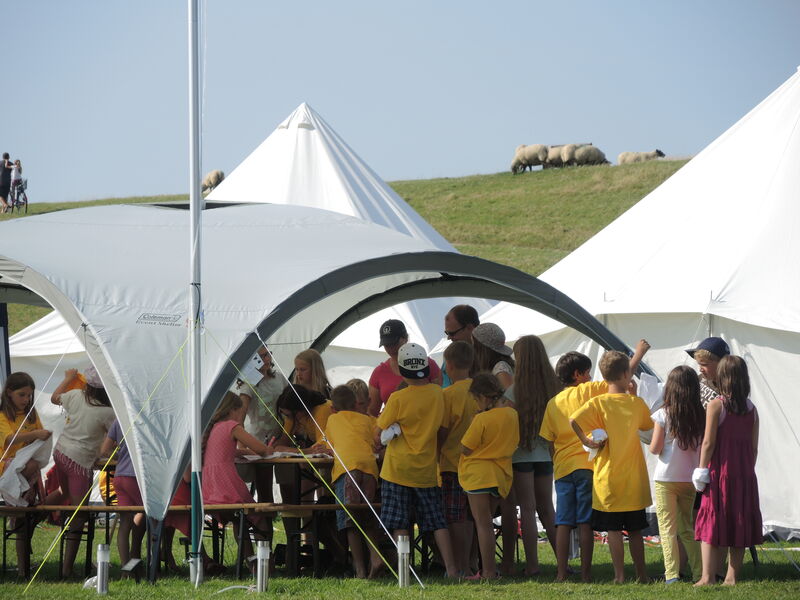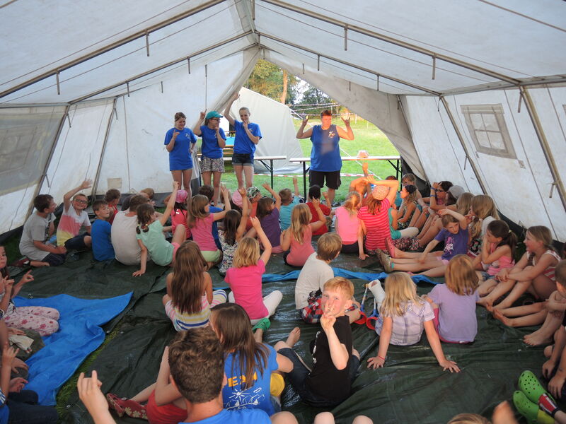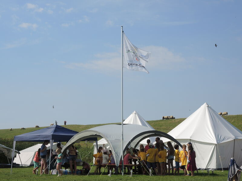 70 Kinder, 15 Mitarbeiter, Teamer genannt, 13 Zelte, 1 Wohnwagen und jede Menge Spiele-so bunt präsentiert sich das Deichcamp 3.0, das große Kinderzeltlager der Evangelischen Jugend Cuxhaven-Hadeln in Altenbruch auf der Zeltwiese am, Zeltplatz „Am Weltschiffahrtsweg“.