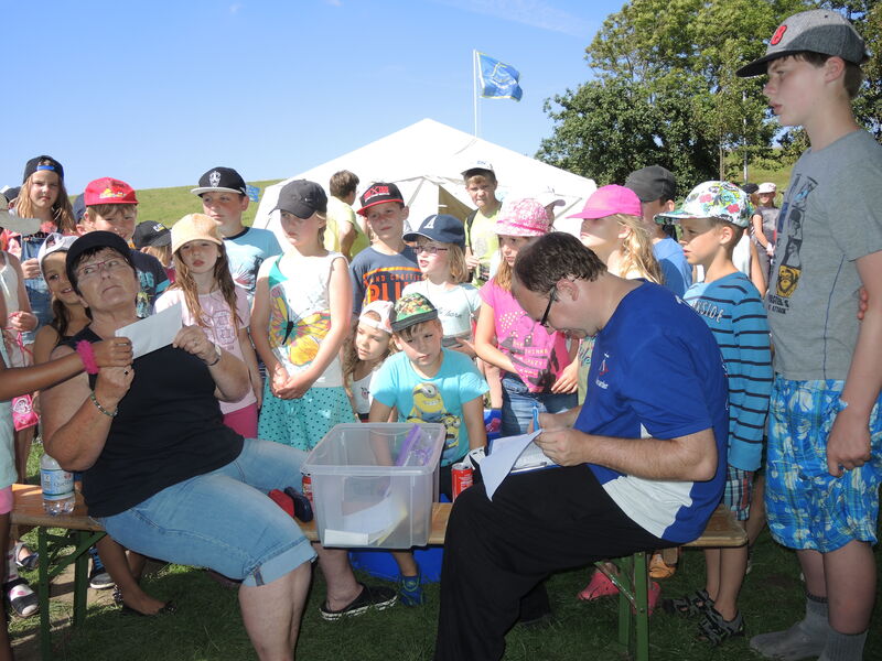 In dieser Woche (3.-7. Aug.) kann „richtig“ gezeltet werden. Das Wetter passt und die knapp 70 Kinder spielen in der Sonne und genießen ihren Sommer am Deich. Vertreter der Stadt, der Nordseeheilbad GmbH und einige Sponsoren besuchen das Zeltlager und erfreuen sich am bunten Treiben. „Ich hab mir sowas hier immer schon gewünscht“, so ein Passant. Und auch die Dauercamper vom benachbarten Zeltplatz gucken gerne mal vorbei und sind sich sicher-so eine tolle Freizeit vergisst man so schnell nicht. Das Deichcamp ist eine eigene kleine Welt mit vielen Abenteuern und Überraschungen, und wenn der Rabe Rudi den Kindern von seinen Abenteuern erzählt lauschen sie dem Vogel, dessen gelber Schnabel nicht aufhören will zu plappern. Wenn morgens die kleine Zeltstadt erwacht, der Schlaf aus den Augen gerieben wird und die Kinder samt Teamern zu den Waschcontainern „pilgern“ dann sind sie bald darauf bei Kakao und und Brötchen bereit für einen neuen Tag. Und für die meisten Kinder ist klar-im nächsten Jahr wollen wir wieder beim Deichcamp dabei…