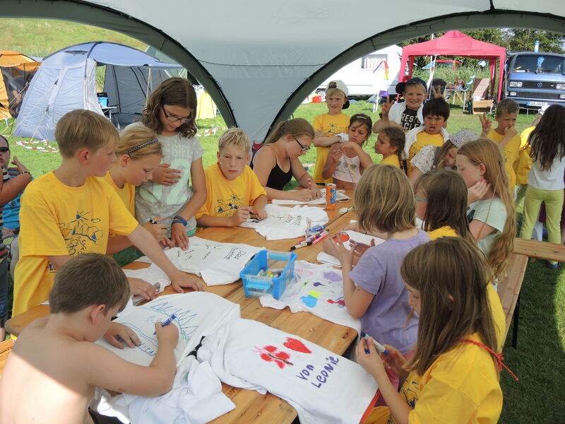 Die Tage sind gut durchgeplant. Morgens nach einem gemeinsamen Frühstück mit Liedern und Aktionen folgt ein thematischer Block mit Geschichten und Anspielen, die meistens von den ehrenamtlichen Teamern gestaltet werden. In diesem Jahr geht es um Wundergeschichten und die Kinder dürfen gerne erzählen, was für „Wunder“ sie schon erlebt haben. Mittags catert die Firma Hertz aus Lüdingworth leckeres, kindgerechtes Essen und danach ist Zeit für einen kurzen Mittagsschlaf im Zelt oder „unter freiem Himmel“. Dann starten die Kreativangebote. Es werden Schatzkästchen gebaut, lustige Tontopftiere gestaltet, bunte Schlüsselanhänger geknüpft und Holzfische bemalt. Ausflüge ans Wasser und auf den Spielplatz fehlen ebenso wenig wie ein Besuch der „Dicken Berta“ und dem kleinen Hafen.